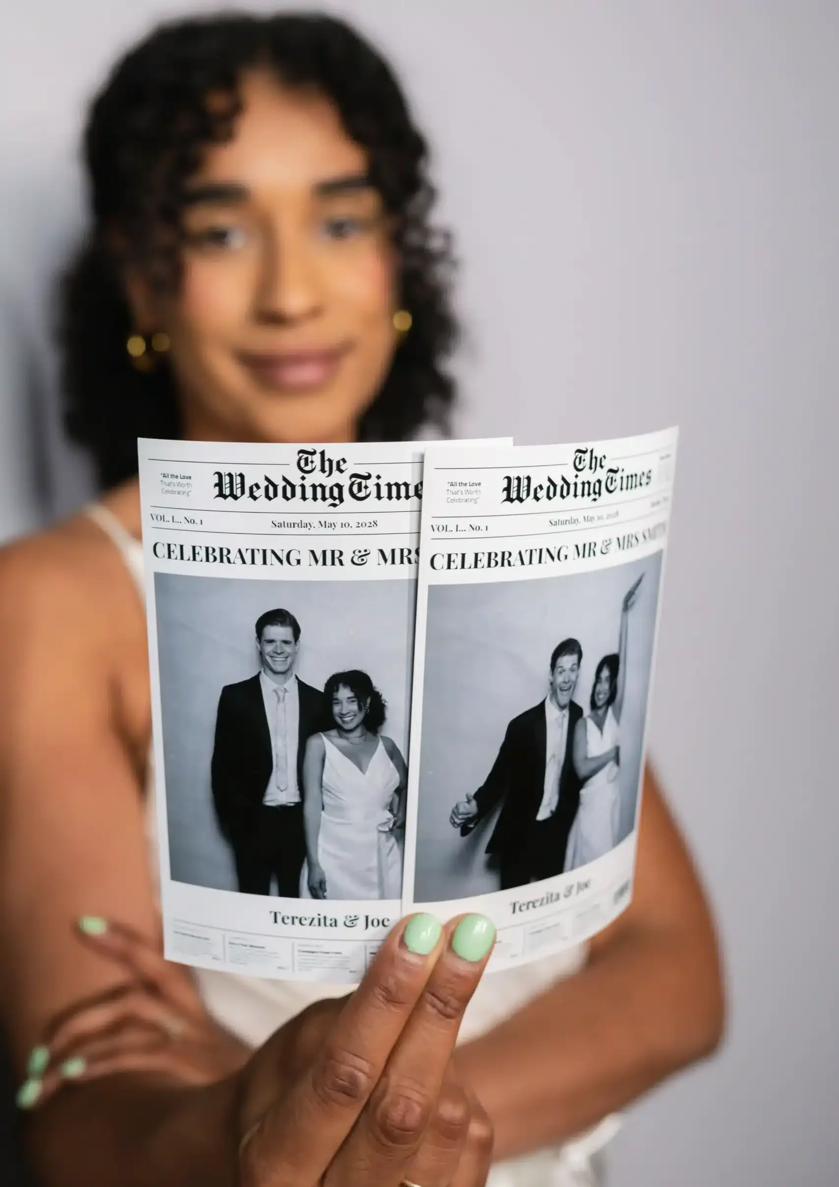 Transform your event with unique, newspaper-style portraits featuring personalized headlines and layouts. Perfect for weddings, corporate events, and parties, this experience adds a creative, nostalgic, and highly shareable twist that guests instantly connect with. Each portrait feels like a custom front-page feature, giving everyone their own spotlight moment that’s fun, memorable, and impossible to resist posting.